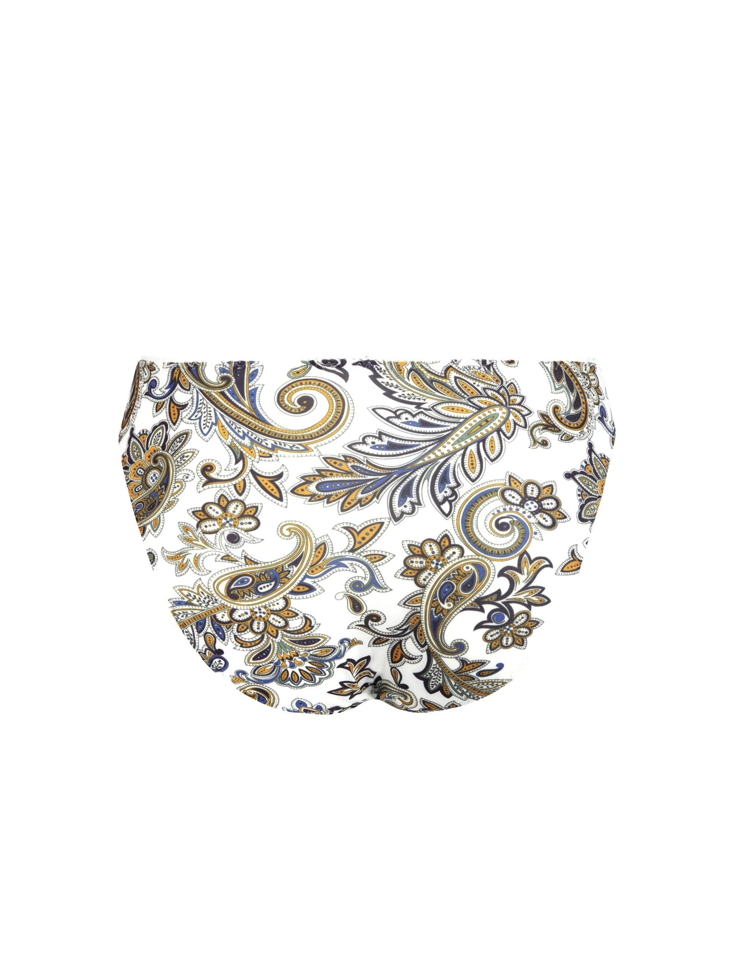 Introducing the Evasion Cashmer Brief, from the Antigel brand. This stylish underwear boasts a striking paisley design in bright hues. Made with soft, comfortable materials, it offers full coverage and a subtle contour on the front legs for a longer leg effect. Enjoy all-day comfort and a personalized fit with this elevated addition to your lingerie collection.