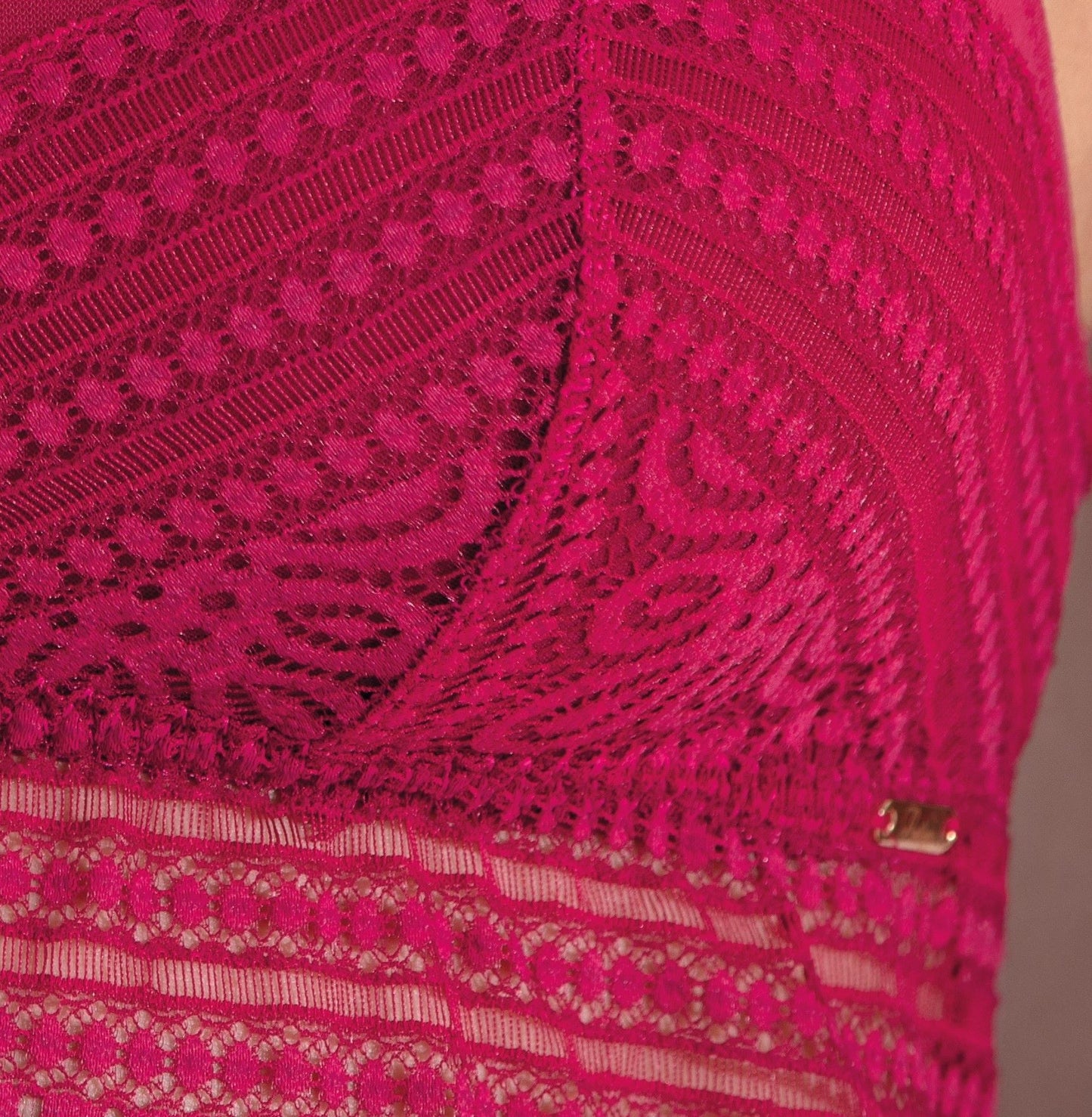The Emotion line by Leilieve offers an elegant solution to your lingerie wardrobe. This plunge bra features an intricate floral soft, stretchy lace and geometric dots pattern that provides an alluring look, while graduated padding ensures a flattering silhouette. It also features a flat lace design to minimize show-through. Enjoy luxury and style with this sophisticated piece.