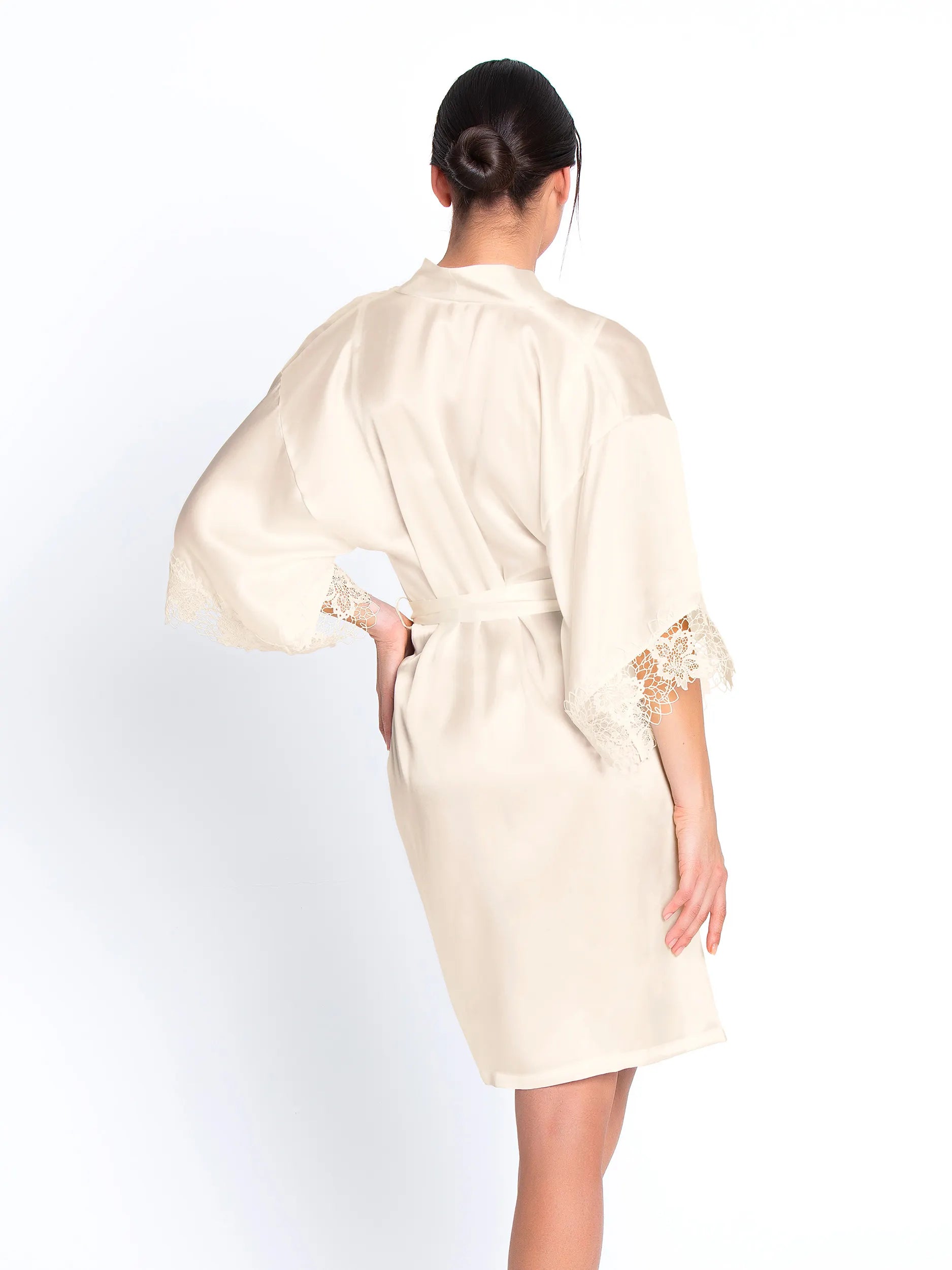 Experience a floral and romantic escape with the stunning Princesse Iris collection by Lise Charmel. Delicately detailed embroidery enhances your silhouette with a subtle glow, exuding irresistible sensuality. This elegant silk robe offers a refined sense of luxury, combining exceptional stretch with supreme comfort. Crafted from pure silk, the fabric shimmers beautifully under light, adding a touch of radiant sophistication.